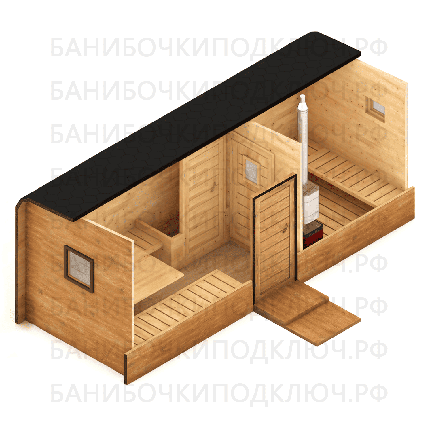 Баня парус 6 x 2,3 м с проходной мойкой